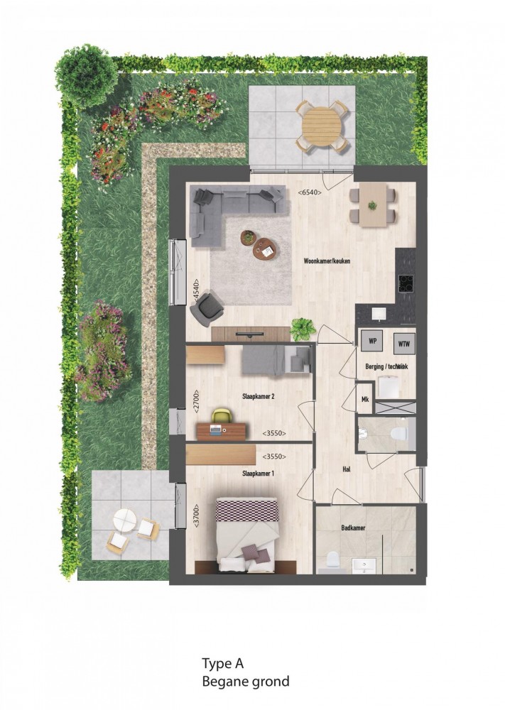 De vloeren worden voorzien van een cementdekvloer met vloerverwarming.