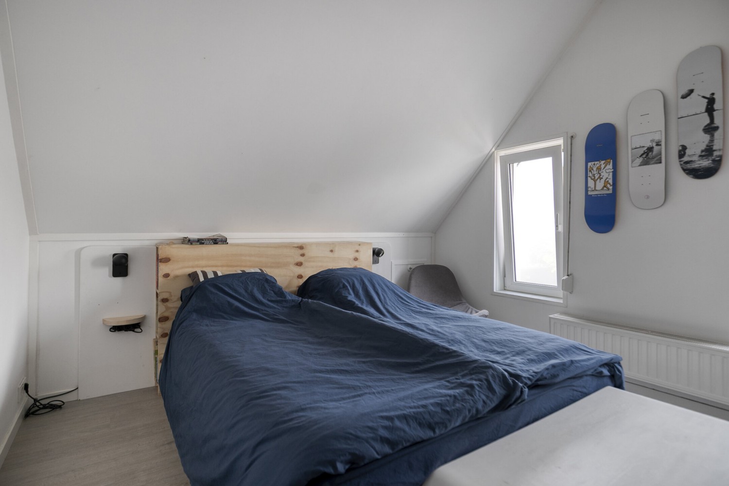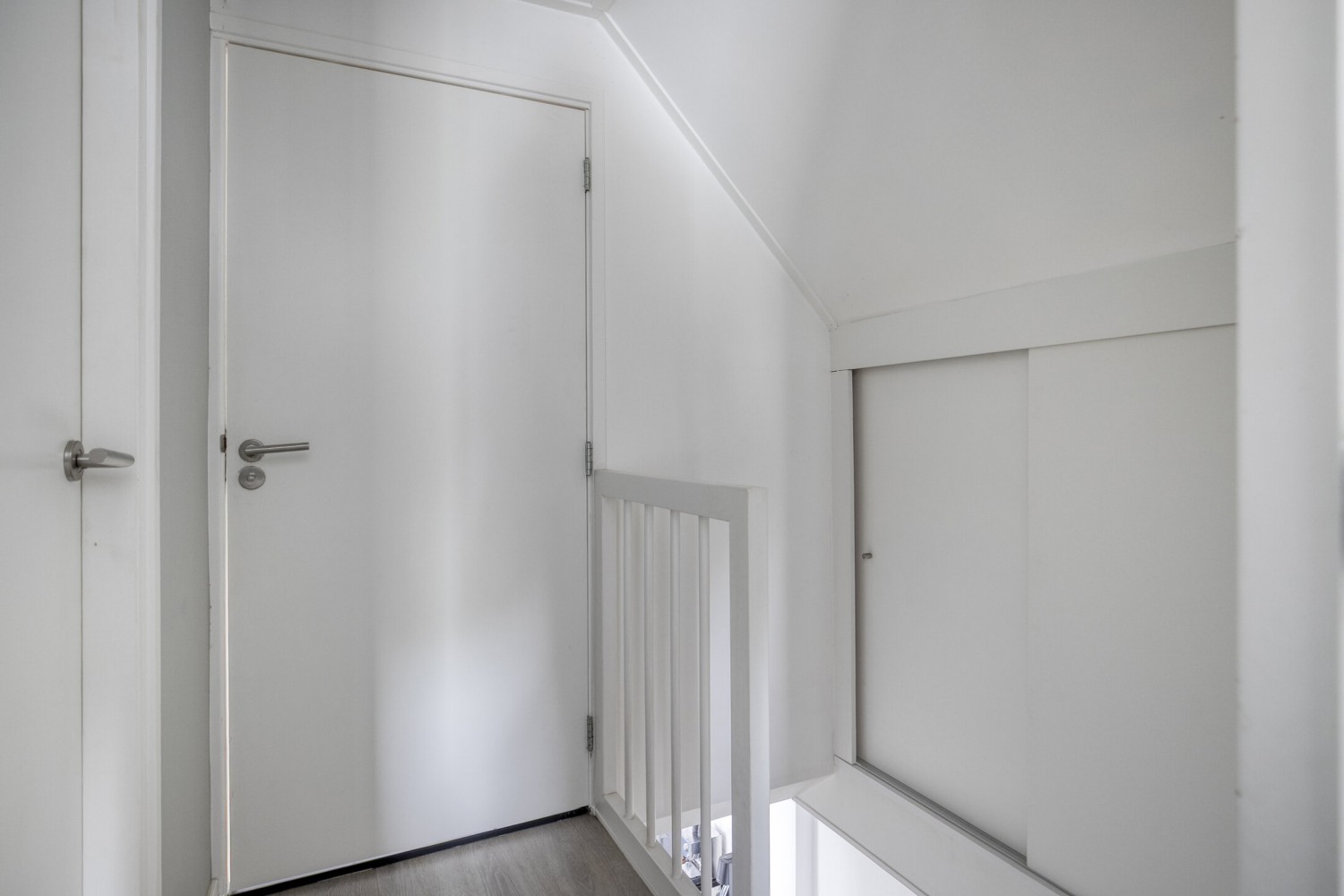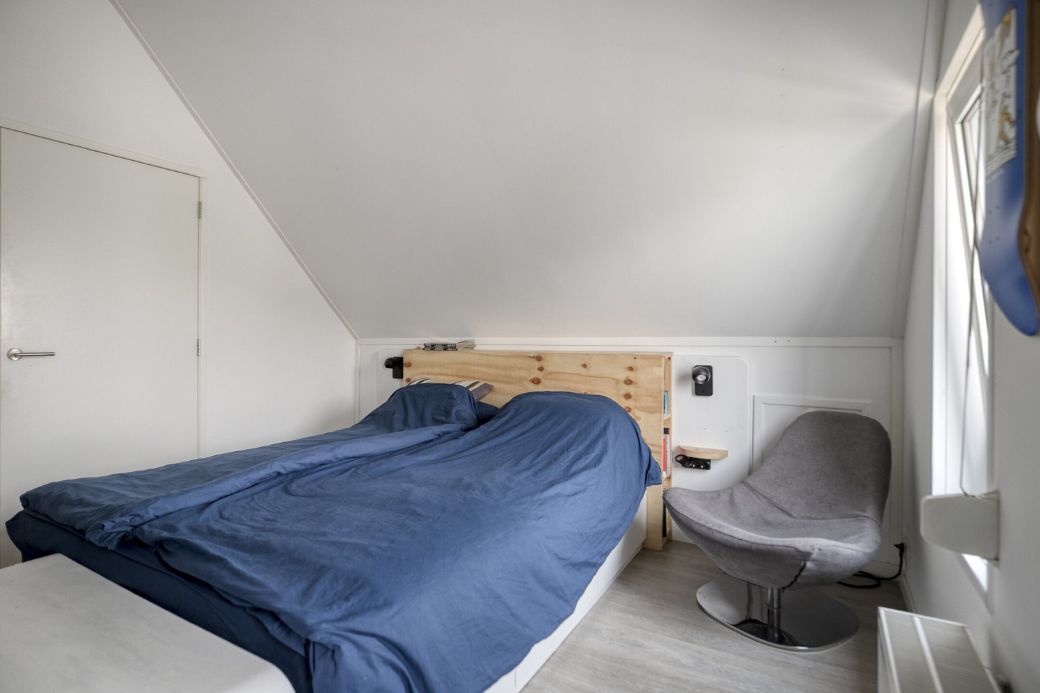 Op de eerste verdieping geeft de overloop toegang tot twee slaapkamers, een apart toilet met wastafel en een praktische bergruimte met de cv-ketel. Eén van de slaapkamers beschikt over keurige inbouwkasten. De kamers zijn netjes afgewerkt en bieden volop mogelijkheden voor slapen, werken of hobby.