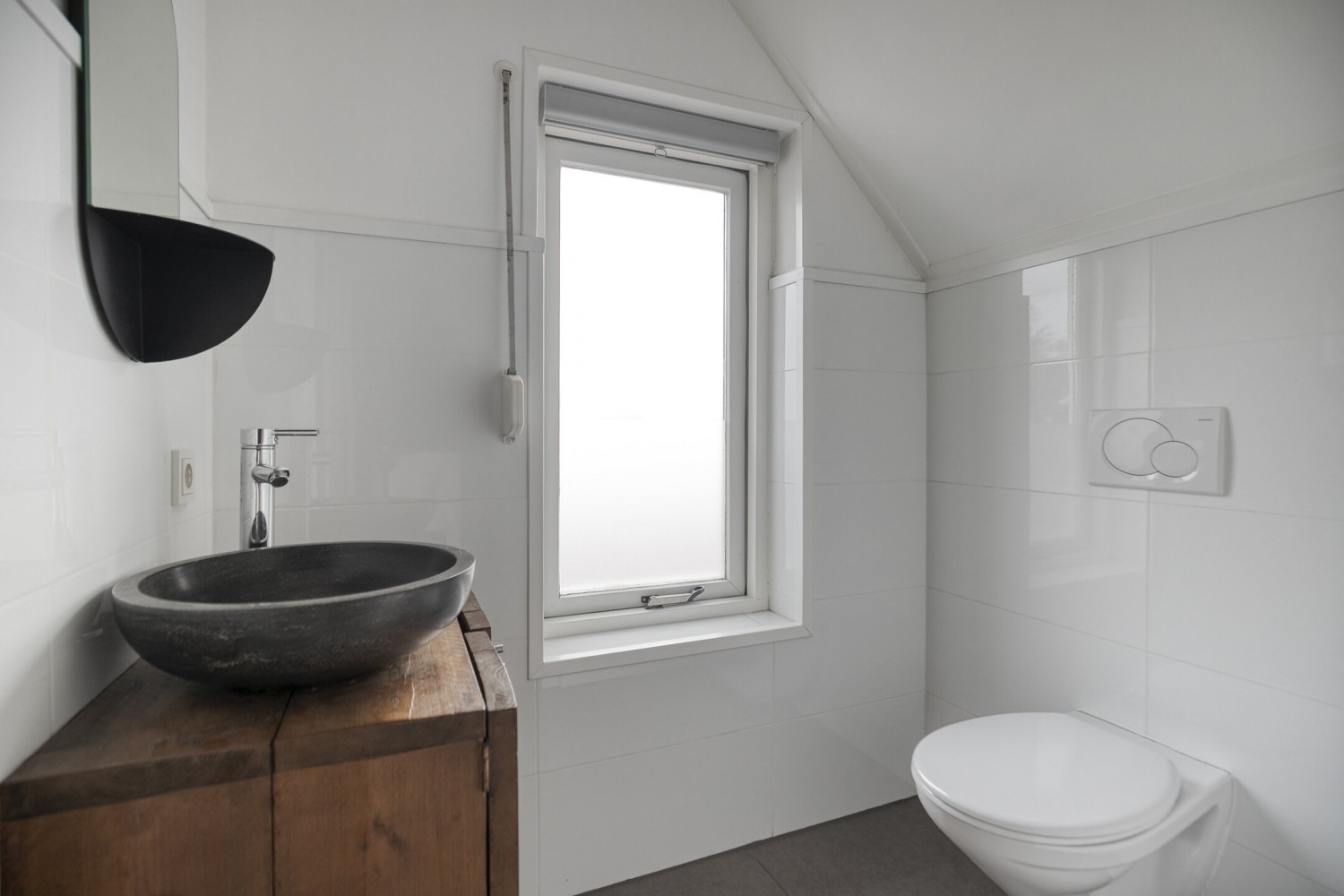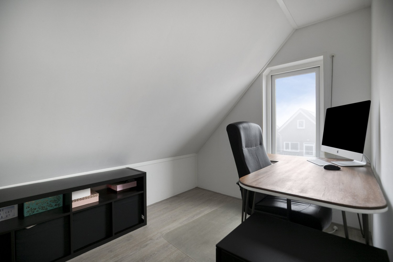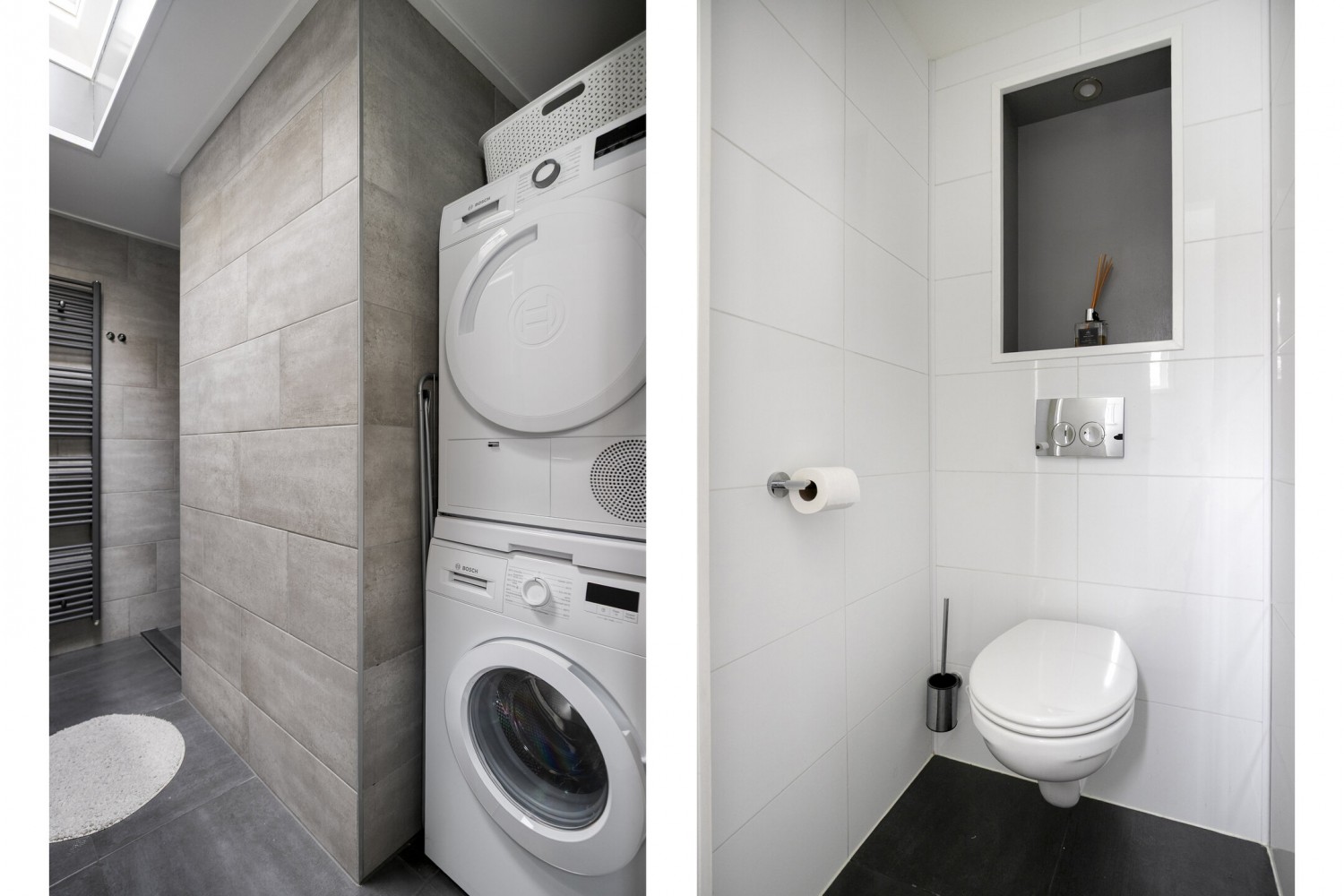 Op de eerste verdieping geeft de overloop toegang tot twee slaapkamers, een apart toilet met wastafel en een praktische bergruimte met de cv-ketel. Eén van de slaapkamers beschikt over keurige inbouwkasten. De kamers zijn netjes afgewerkt en bieden volop mogelijkheden voor slapen, werken of hobby.