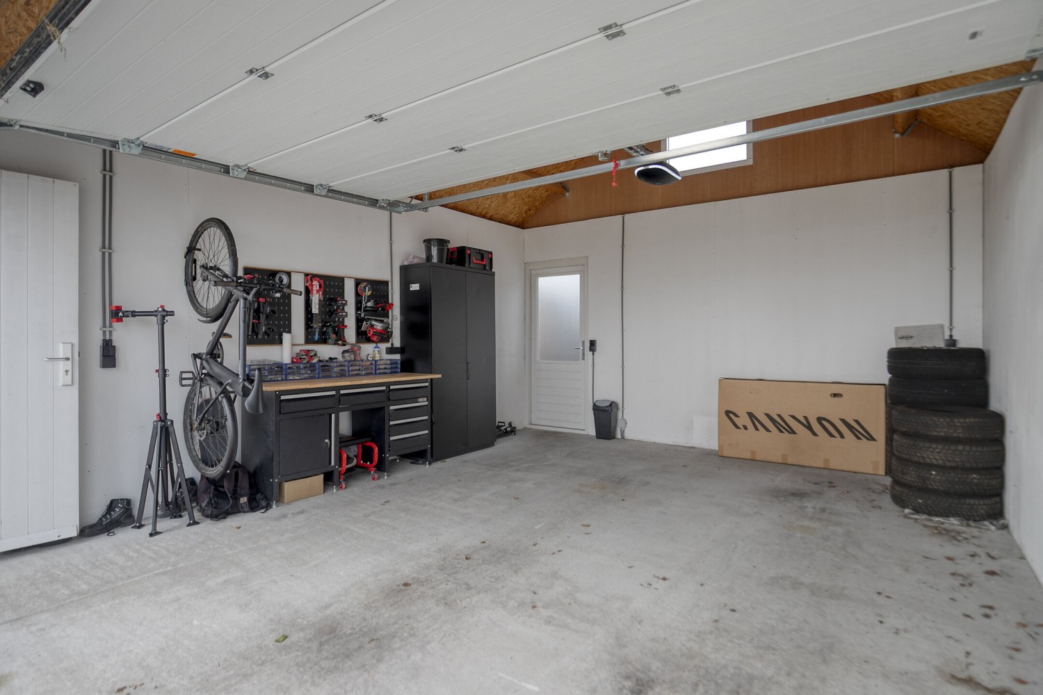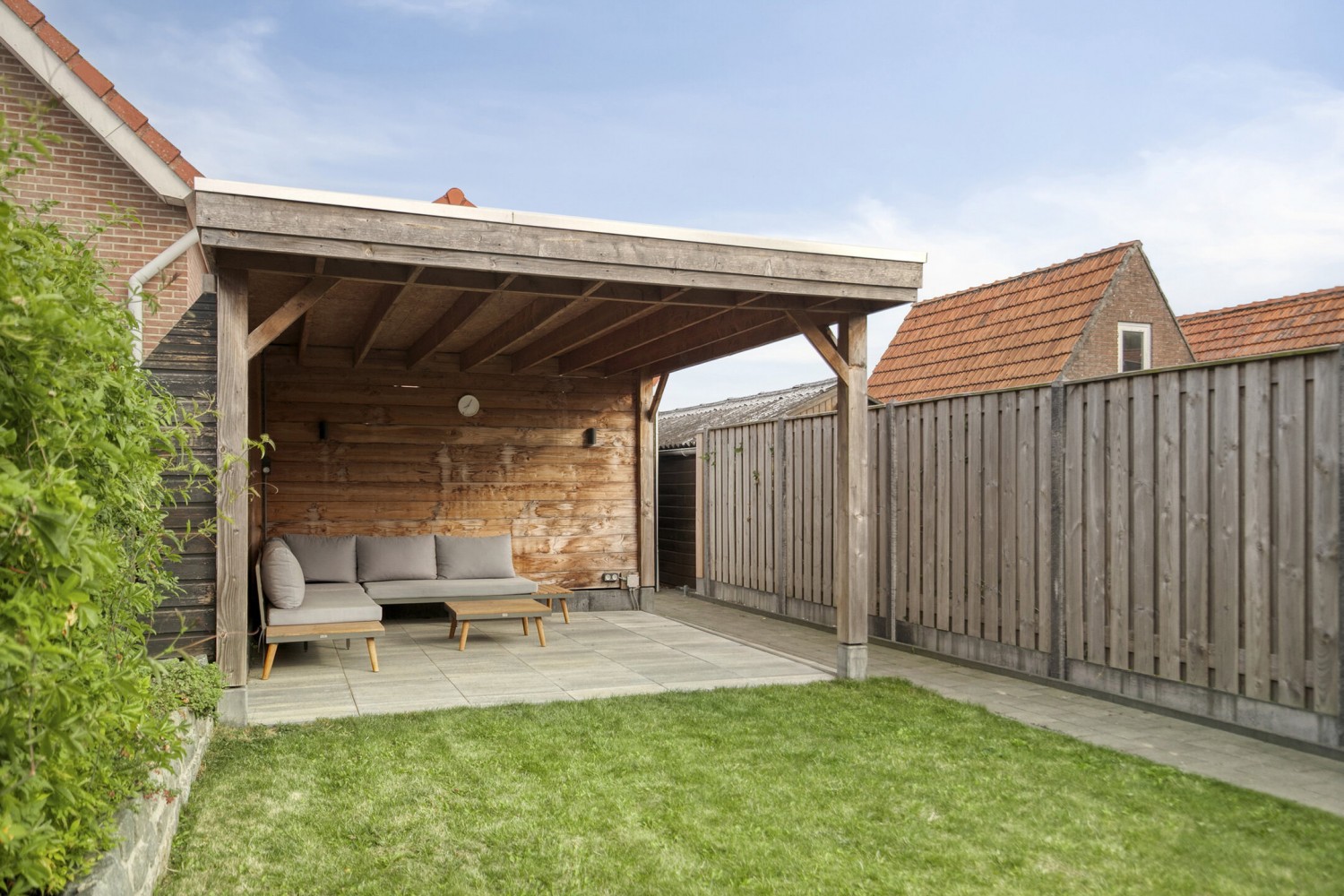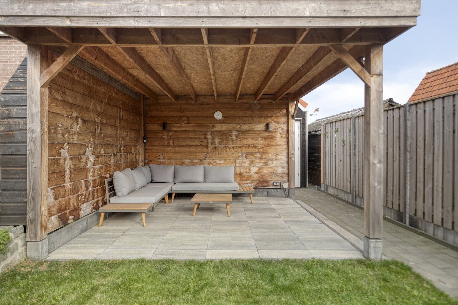 De achtertuin is verrassend diep en ligt op het oosten, waardoor je er al vroeg van de zon kunt genieten. Het nette gazon, het fijne terras met overkapping en de vrije achterom maken het tot een heerlijke plek om buiten te zijn. Achterin de tuin staat een ruime garage met voldoende plaats voor een auto, fietsen en (tuin)gereedschap.