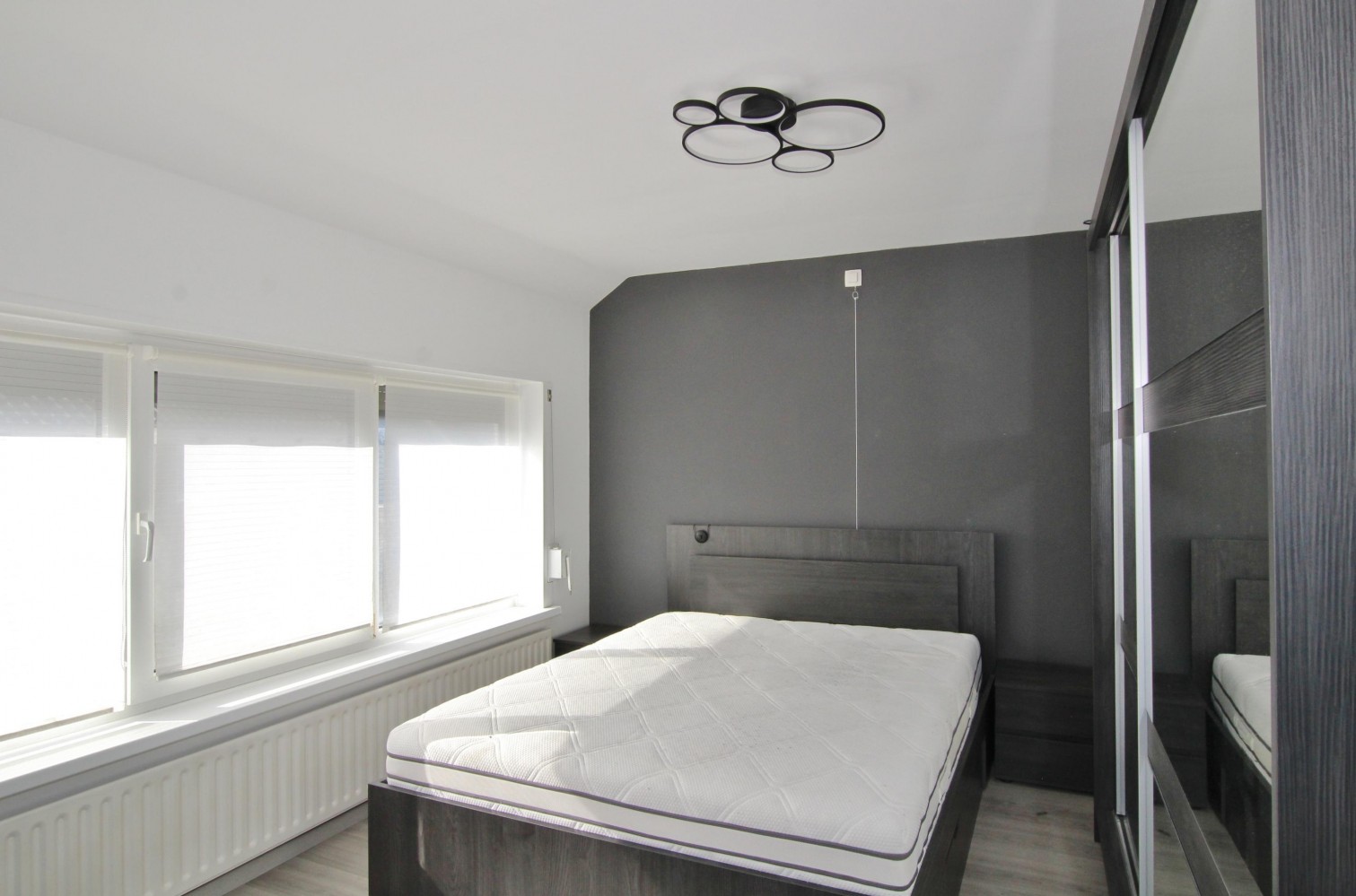 Hier bevinden zich drie slaapkamers met houten vloeren, deels voorzien van kunststof kozijnen en rolluiken: