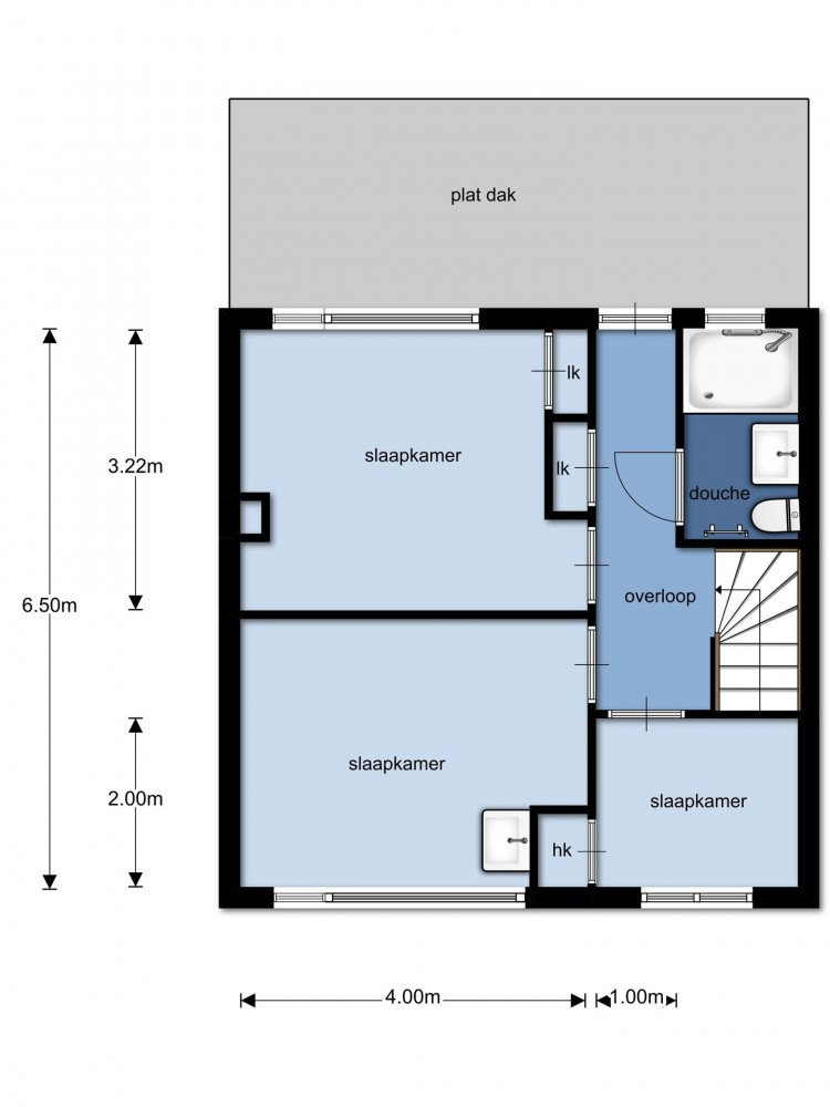 Via de overloop heb je toegang tot het dakterras aan de achterzijde.
